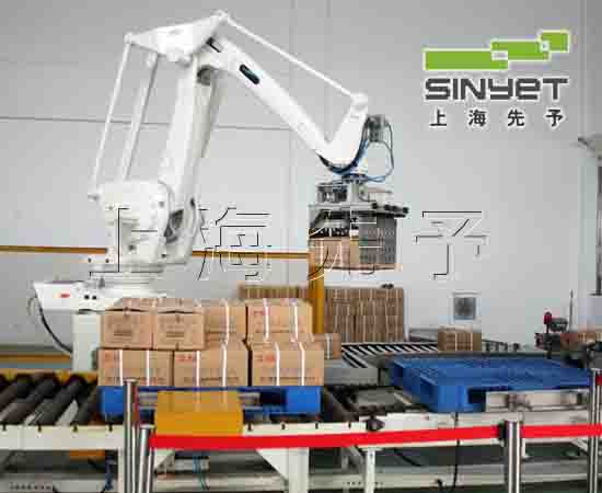 概況機(jī)器人碼垛機(jī)適應(yīng)于化工、飲料、食品、啤酒、塑料、空調(diào)等生產(chǎn)企業(yè)對紙箱、袋裝、罐裝、盒裝、瓶裝等各種形狀的成品進(jìn)行裝箱和碼垛。